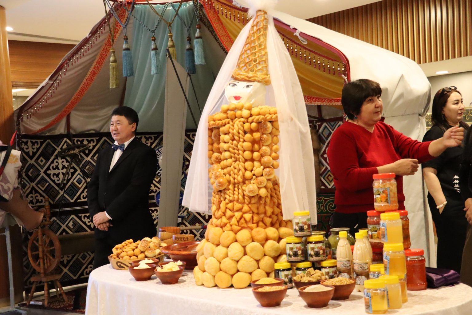 Облыстық филармония фойесінде ұйымдастырылған көрмеде қолөнер бұйымдары, заманауи шығармашылық туындылар, дәстүрлі және қазіргі заман өнері үйлесім тапты. Ең ерекше экспонаттардың бірі – 1515 қой мен ешкі асығынан жасалған биіктігі 113 см торсық болды. Сонымен қатар ағаштан ойылған оюлы түйреуіш, тоқылған сурет, көркемдік композициялар мен сәндік-қолданбалы өнер туындылары көз жауын алды.