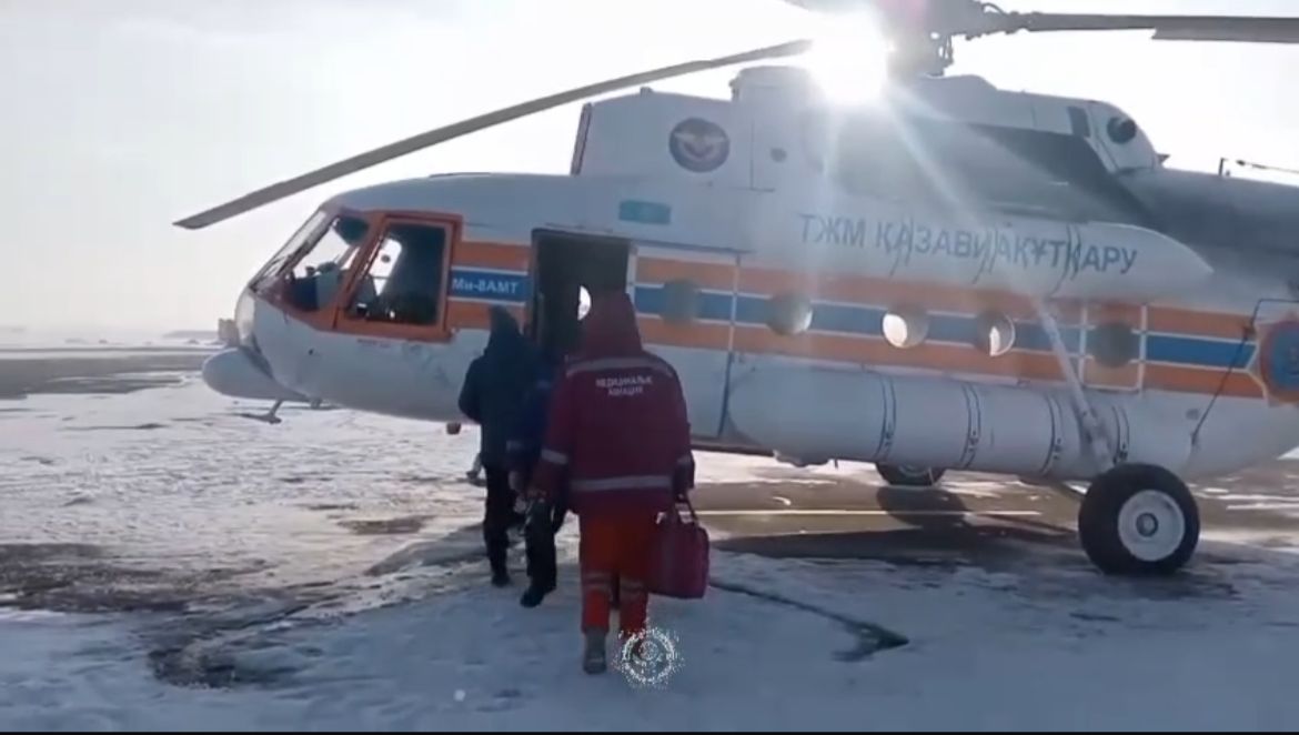 ҚР ТЖМ «Қазавиақұтқару» әуе бөлімшесінің пилоттары Сергей Пинигин мен Бауржан Бутенбаев, санавиация дәрігерлері Лариса Величко мен Айгүл Құдербаеваның сүйемелдеуімен «Ми-8» тікұшағы арқылы науқас қалаға шұғыл жеткізілді