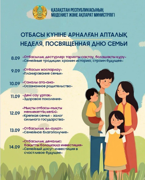 Апта бойы еліміздің өңірлерінде отбасы институтын нығайтуға және дәстүрлі құндылықтарды насихаттауға бағытталған мәдени, білім беру және әлеуметтік іс-шаралар өтеді.