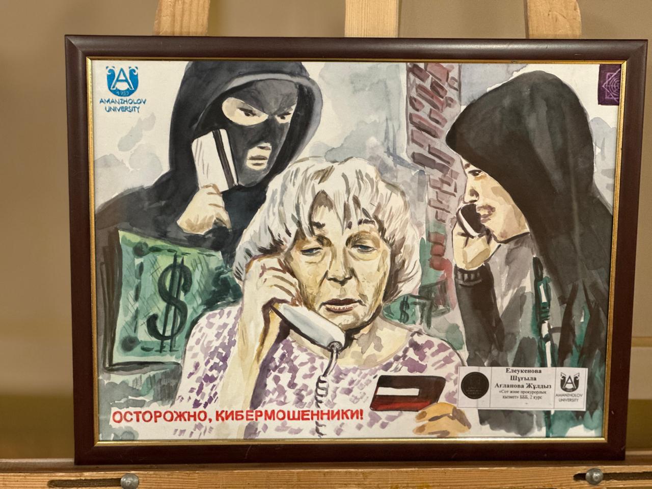 Цифрлық қауіпсіздік тақырыбында өткен ашық сабаққа келген студенттер мен құрметті қонақтар филармония фойесінде ұйымдастырылған тақырыптық көрмені тамашалады.